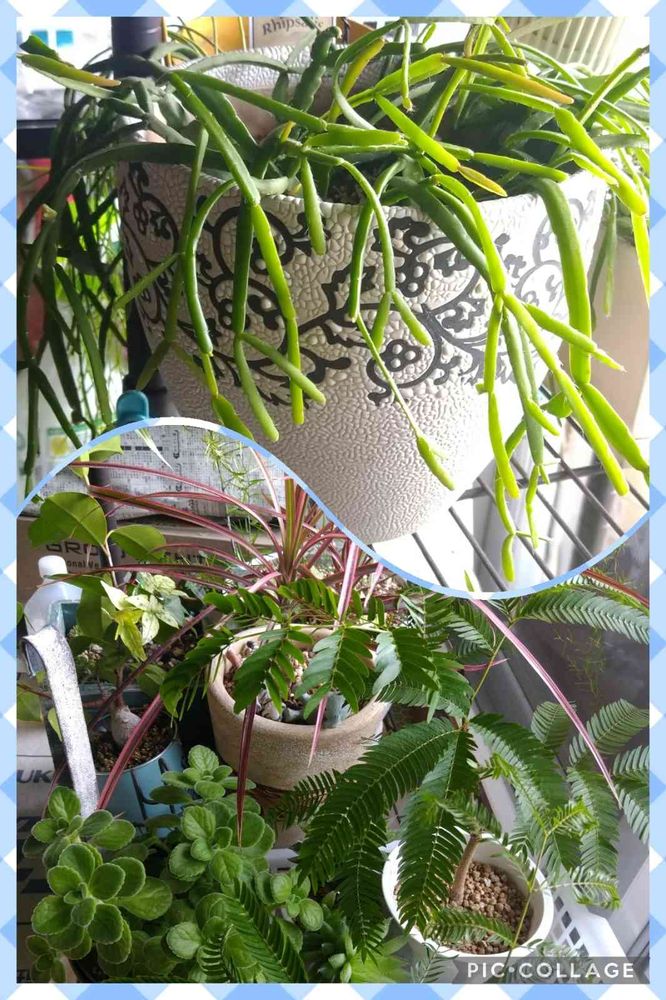 リプサリスのピンクサリー、去年に葉っぱにカサブタ?枯れた部分がチラホラて来たので植え直し株分けしてココまで再生したんだけど、葉っぱが細いので太くなるように頑張ろう(⁎˃ ᵕ ˂ )و