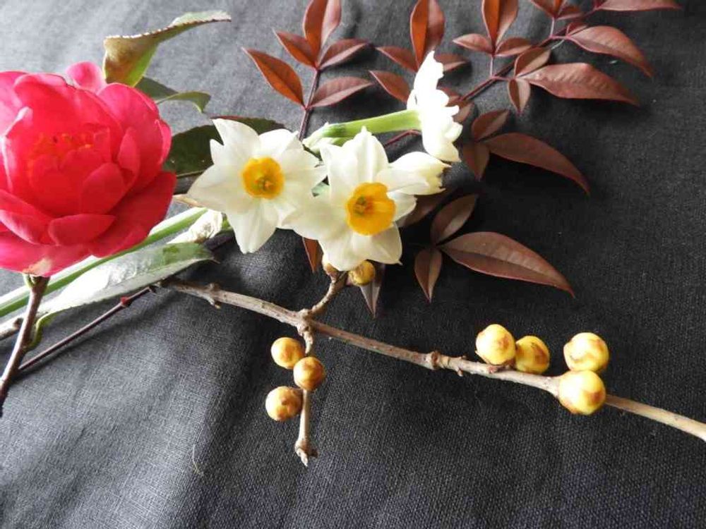 水仙の白と椿の赤💕素敵ですね🥰置き方もセンスが光ってます✨