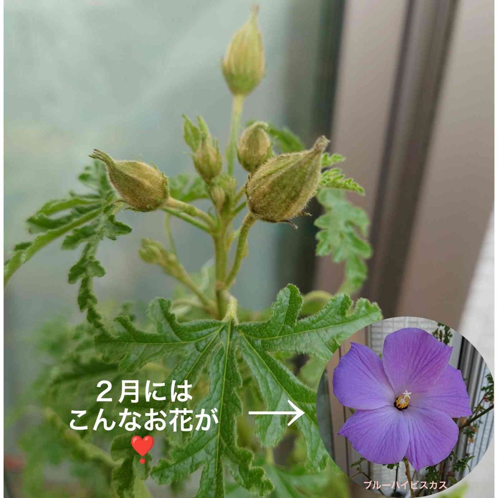 サンルームの中で育成中のブルーハイビスカスさん❗。蕾がふっくらしてきました。2月の中頃には❣️。