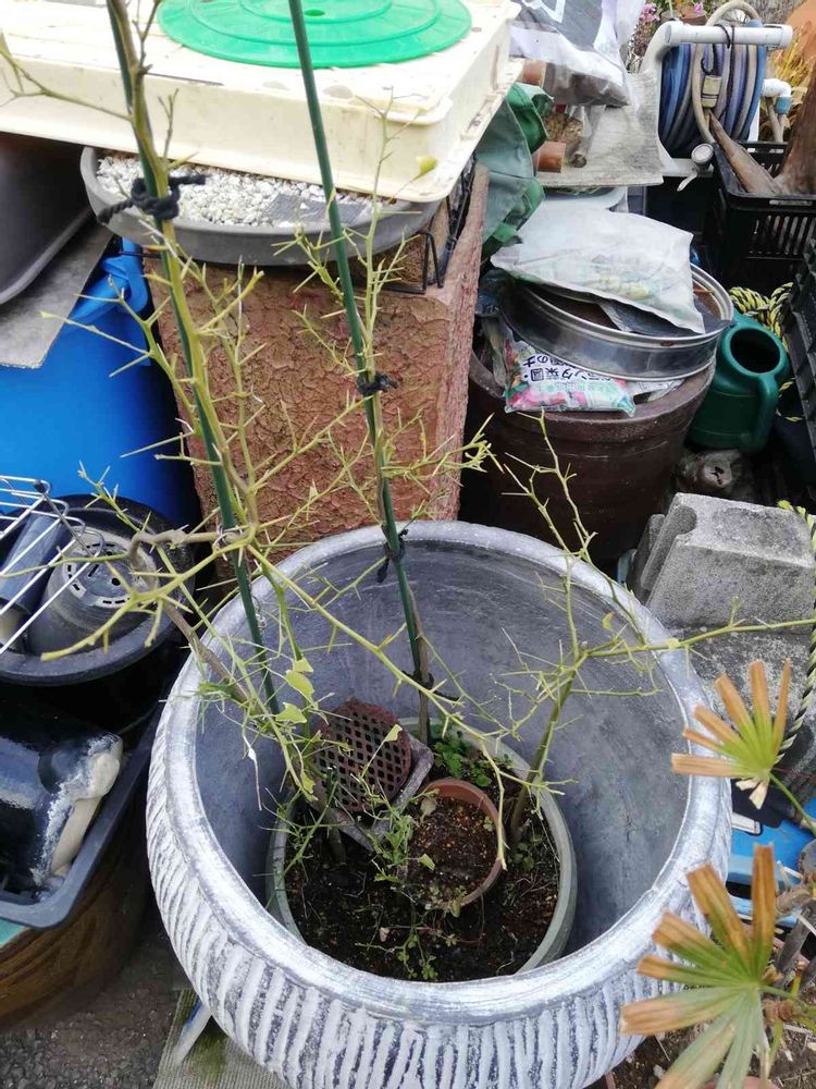レモンの 幼木 寒いと思い壺の中に入れてあります😊