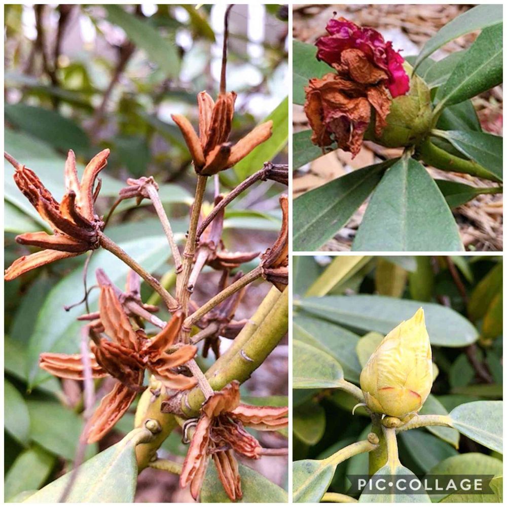 花咲かせる時期を迷ったかのようなシャクナゲ。