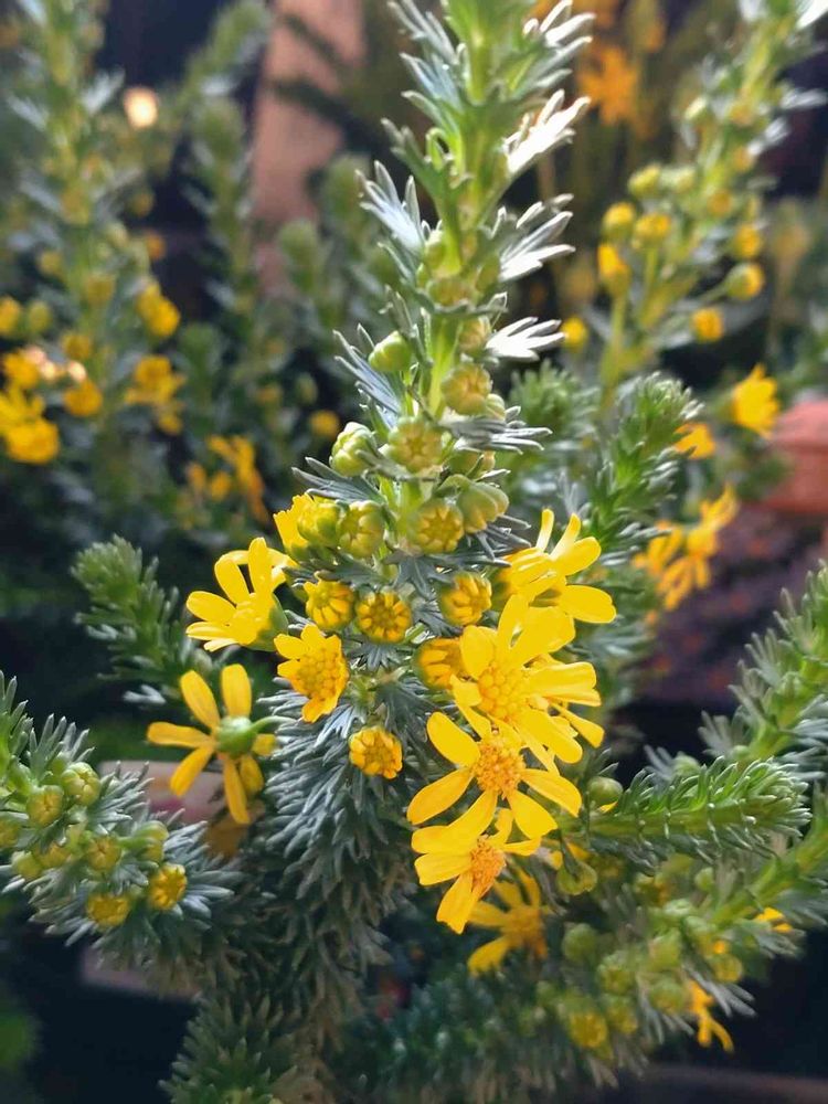 枝分かれしながら大きくなった株姿は円錐形よ紙容器のクラッカーよような形で紐を引いたらバーンと紙吹雪が飛び出すように 黄色い💛小花が弾けるように咲きます 寒い時期に可愛く暖かみのあるお色で咲いてくれます