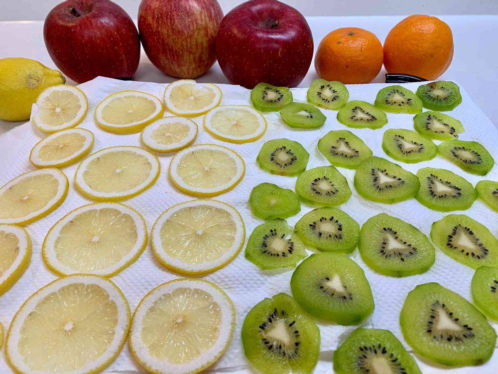 偶然にも私もキウイをダメにしちゃったのを、輪切りにし飾りに使うため、ドライにしてます。