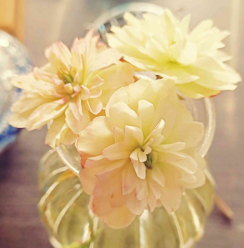 縁がピンク、白からうっすらグリーンなんですが…後ろが玄関のガラスで逆光のせいかクリーム色になってますね🌸😁