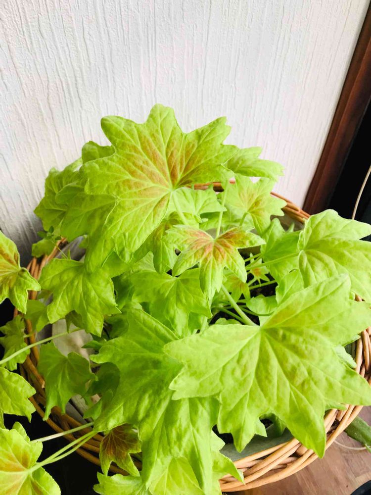 窓辺の紅葉ゼラニウムがほぼほぼグリーンに😂
