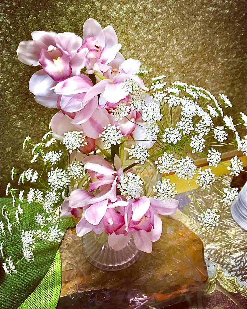 お正月の蘭にレースフラワーを加えて乙女っぽく飾ってみました💕💕💕