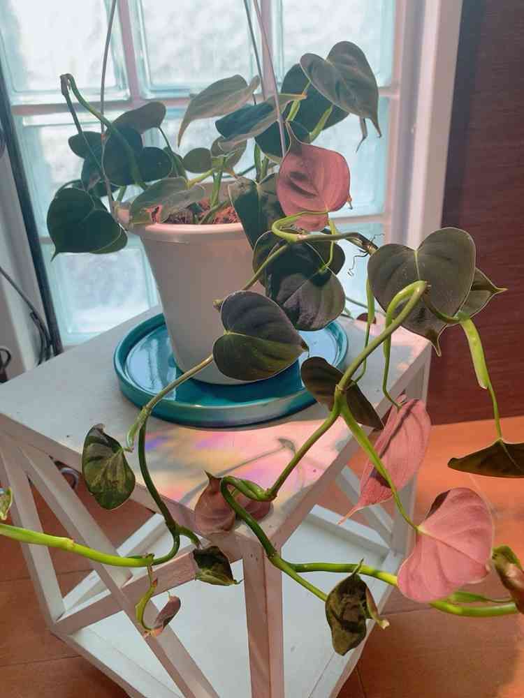 シュッとスタイリッシュなハート型の茶色い葉っぱが魅力的で、ミカンスさんを買う気満々で花宇宙さんに行ったら色んなフィロ系がいて、、、(∗ᵒ̶̶̷̀ω˂̶́∗)੭₎₎̊₊♡