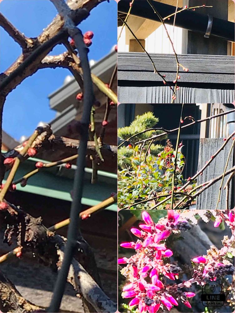 紅梅の枝垂れ梅の蕾が膨らんで来ました❗️