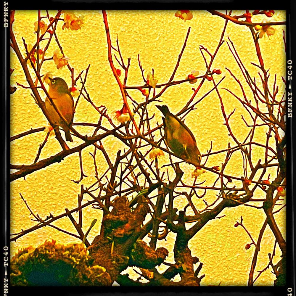 🌸白梅とメジロ鳥の色んな表情のコラボレーションをお楽しみくださいマセ(^_-)✨