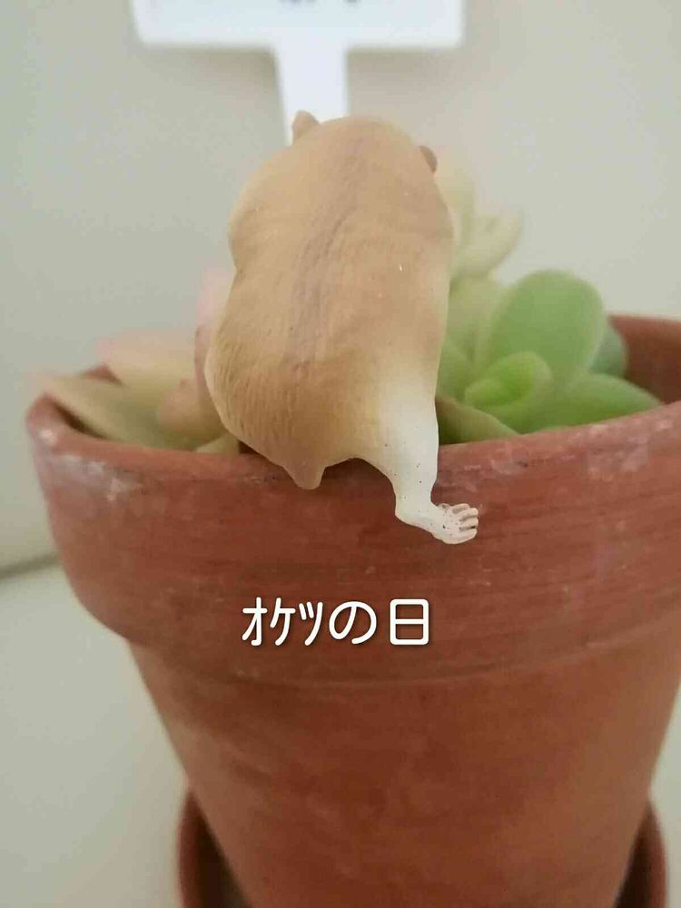 オケツの日のオケツを探していたら昔ガチャで取った子が、鉢にぶら下がって居ましたꉂꉂ(ˊᗜˋ*)笑