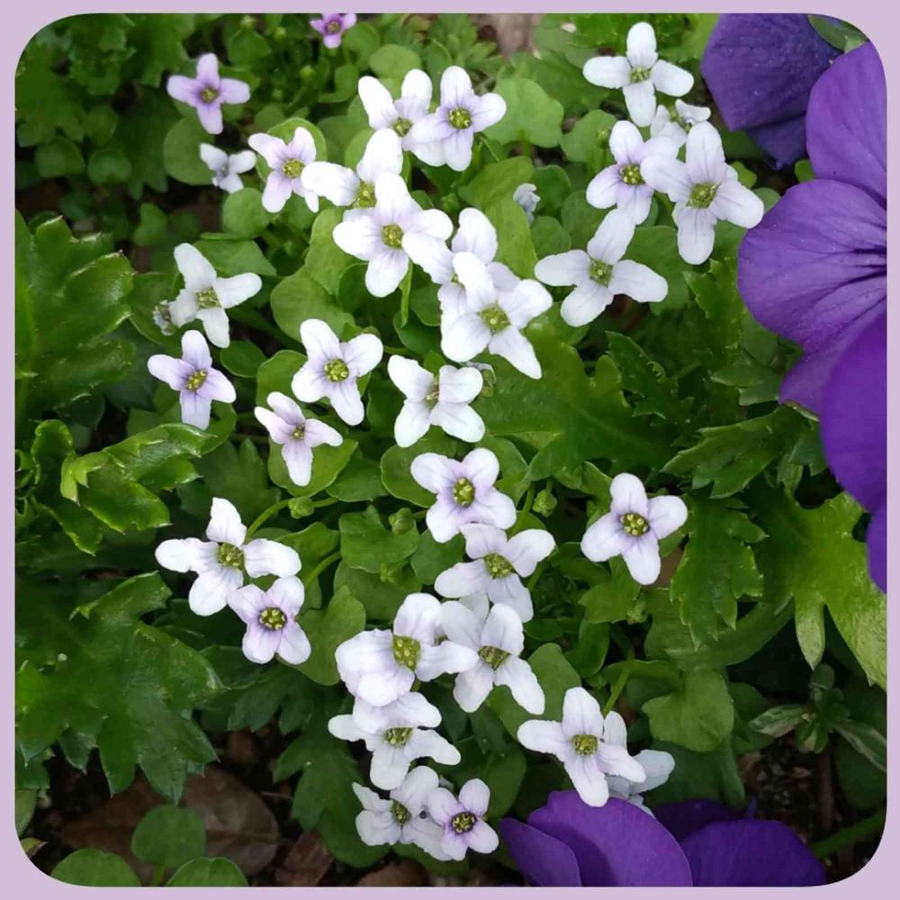 紫と黄色のパンジーの間にこのすごく小さな花が咲いてました💕
