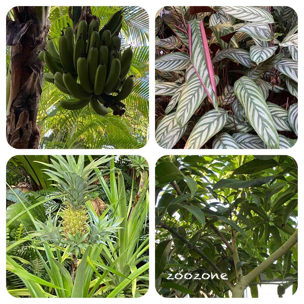 左上から時計回りに、サンジャクバナナ🍌、カラテア、マンゴー🥭、パイナップル🍍