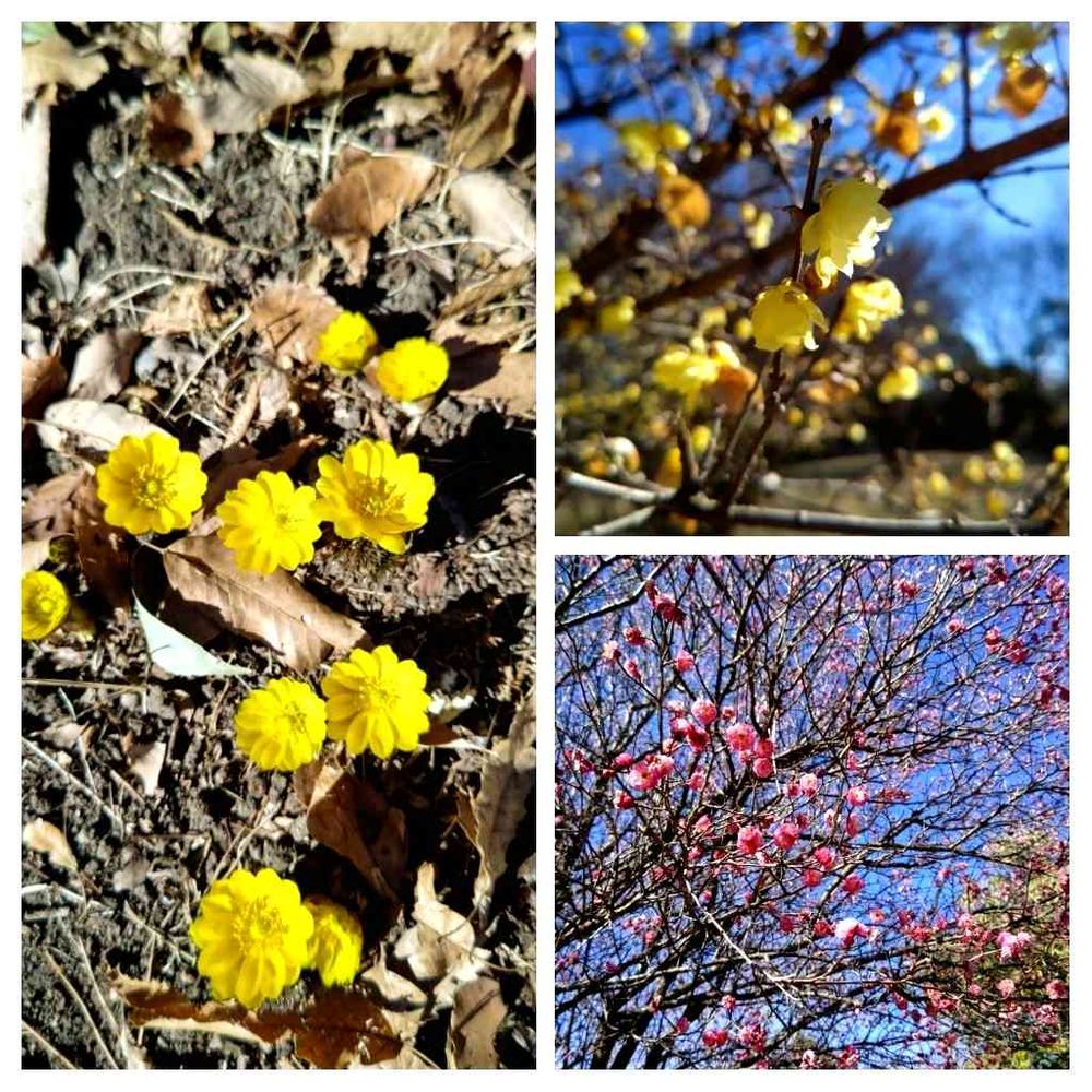 でも福寿草🟡蝋梅🟡紅梅🔴を観ながら、10000歩近く歩きます。