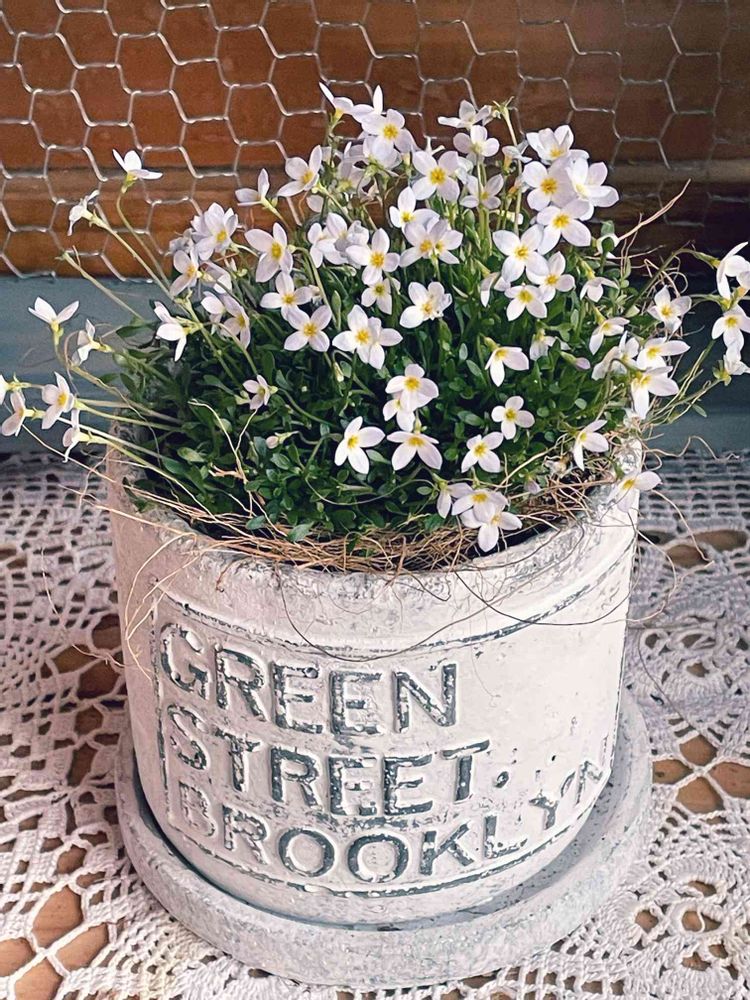 可愛いですネ❣私もこの間、園芸店で、紫のと白いのを見たけど可愛かった❢鉢とマッチして素敵です❢💜🎶🎶