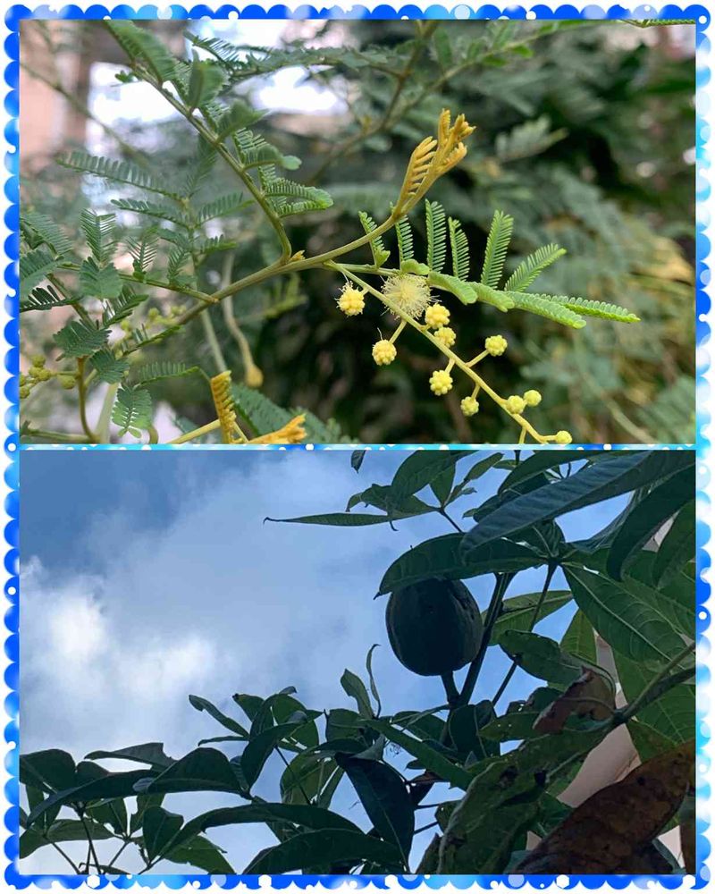 庭のミモザとパキラの実がすくすく育ってます・:*:・(*˘︶˘*).。*♡・:*:・