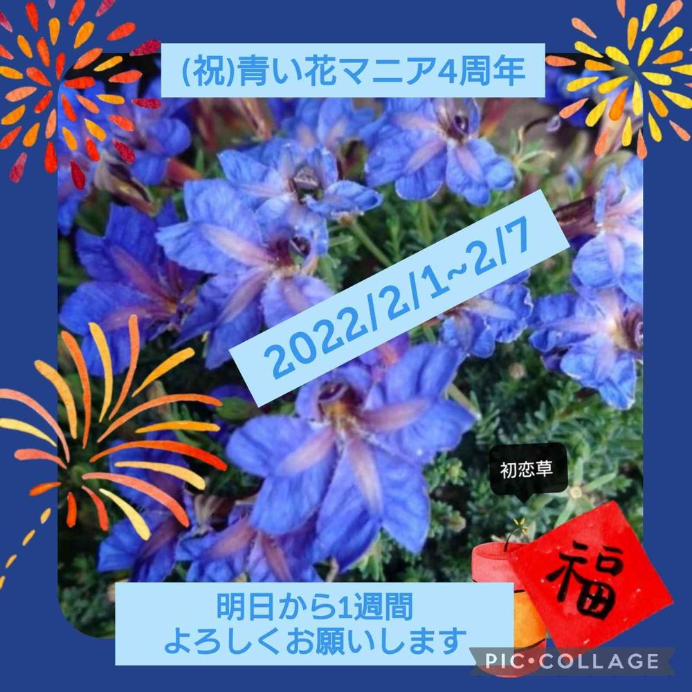 明日2022.2.1火曜日から1週間2.7月曜日まで、青い花を投稿する時に
