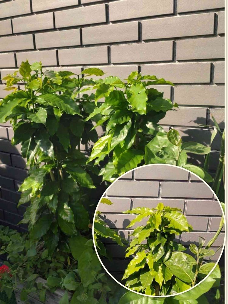 コーヒー☕ゼリー食べたくて珈琲専門店へ娘と行ったとき、店舗の横に《コーヒーの木》が植えてありました!