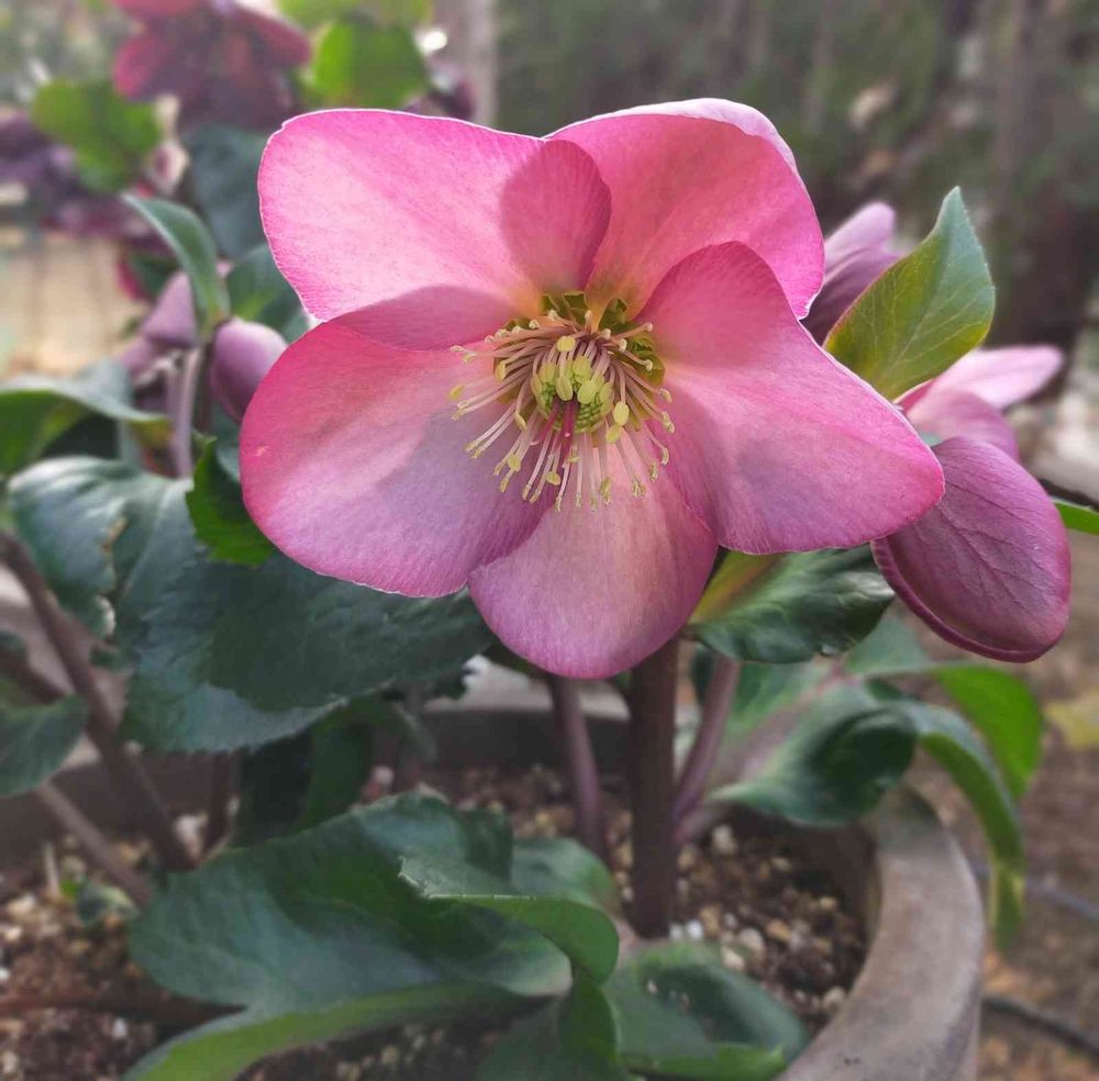 こちらも咲いています、とても強健なクリスマスローズです。太い茎から枝分かれして、お花がたくさん咲きます🌸🌸🌿
