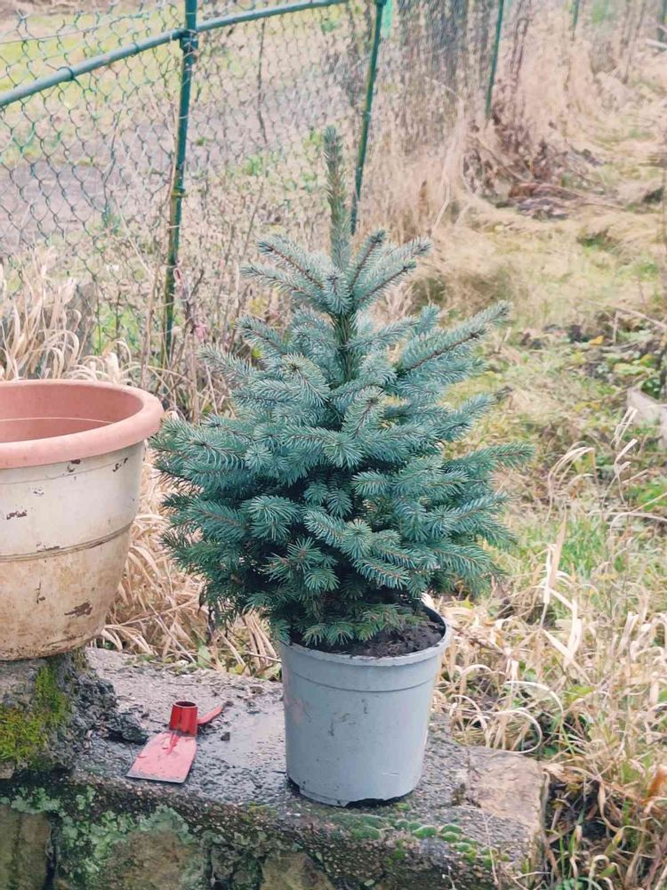 ふらりと立ち寄った園芸店でこの間買ったピセアプンゲンストウヒ baby blueがなんと。この間の値段の半額に値下げしてありました。 半額という言葉に負け買ってきてしまいました…😅😅