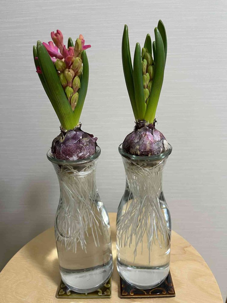 ヒヤシンスがぐんぐん育って、花が見えてきました☺️