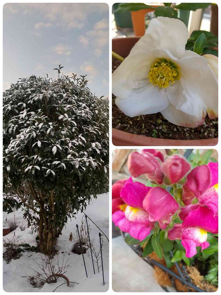 こんばんは😊寒い中クリスマスローズとキンギョソウが元気に咲いていますね〜