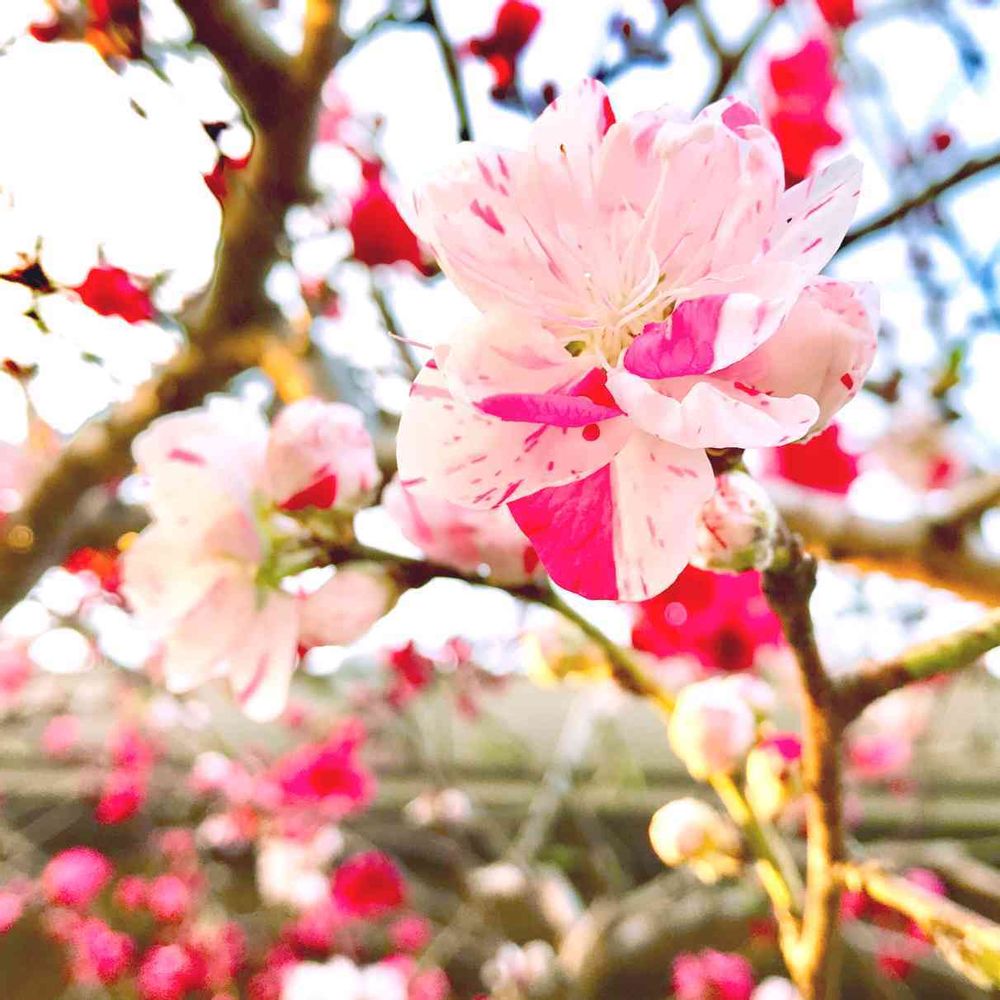 こんな混ざった色合いの桃の花があるなんて初めて知りました😳