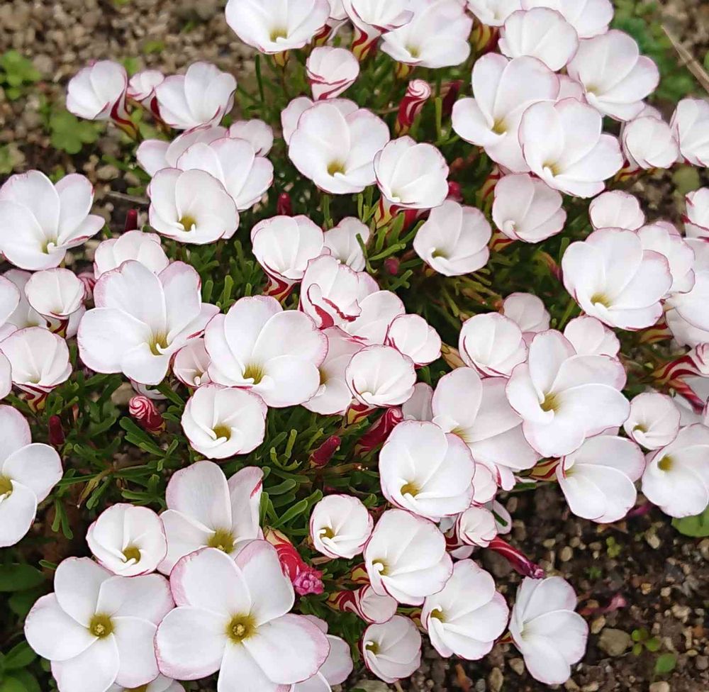 こちらのオキザリス、赤い縁が可愛いです🥰