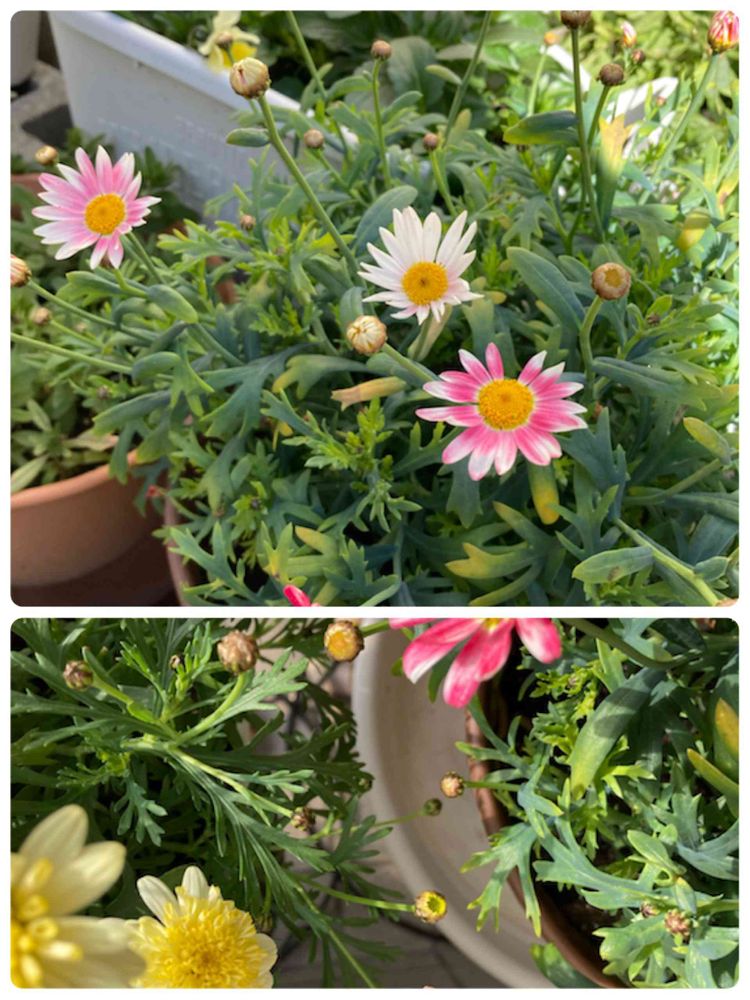 下左 ボンザマーガレットは細くて柔らかくて、少しひ弱な春菊みたい😊