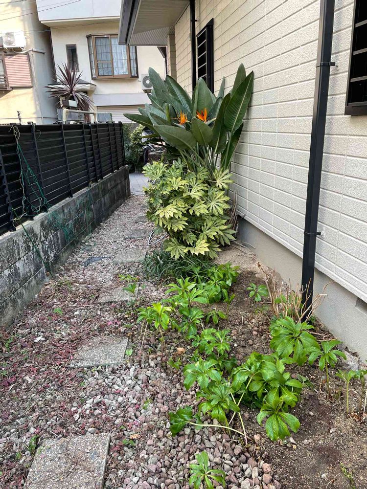 ストレリチアはテーマパーク植栽にも使われていて丈夫なので植えました☺️