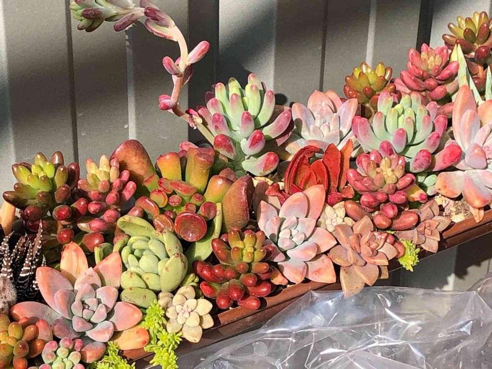 多肉色々寄せ植え紅葉しててとてもステキです➰😆しかも125センチの⁉️凄い量の多肉をお持ちなんですね😳