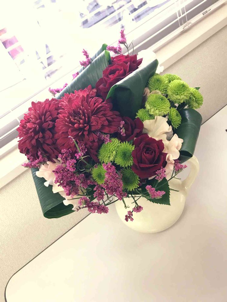 弊社の食堂に飾ってあるアレンジ😊