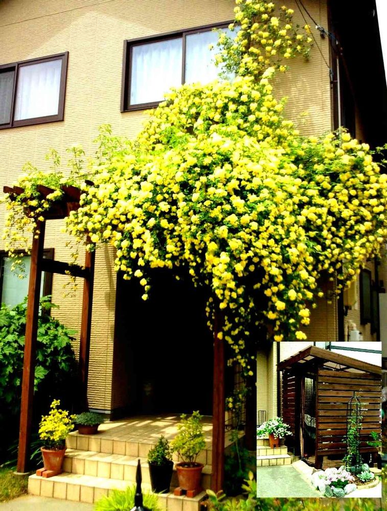 2年前まで、玄関にパーゴラを掛けて黄モッコウを絡ませていました。