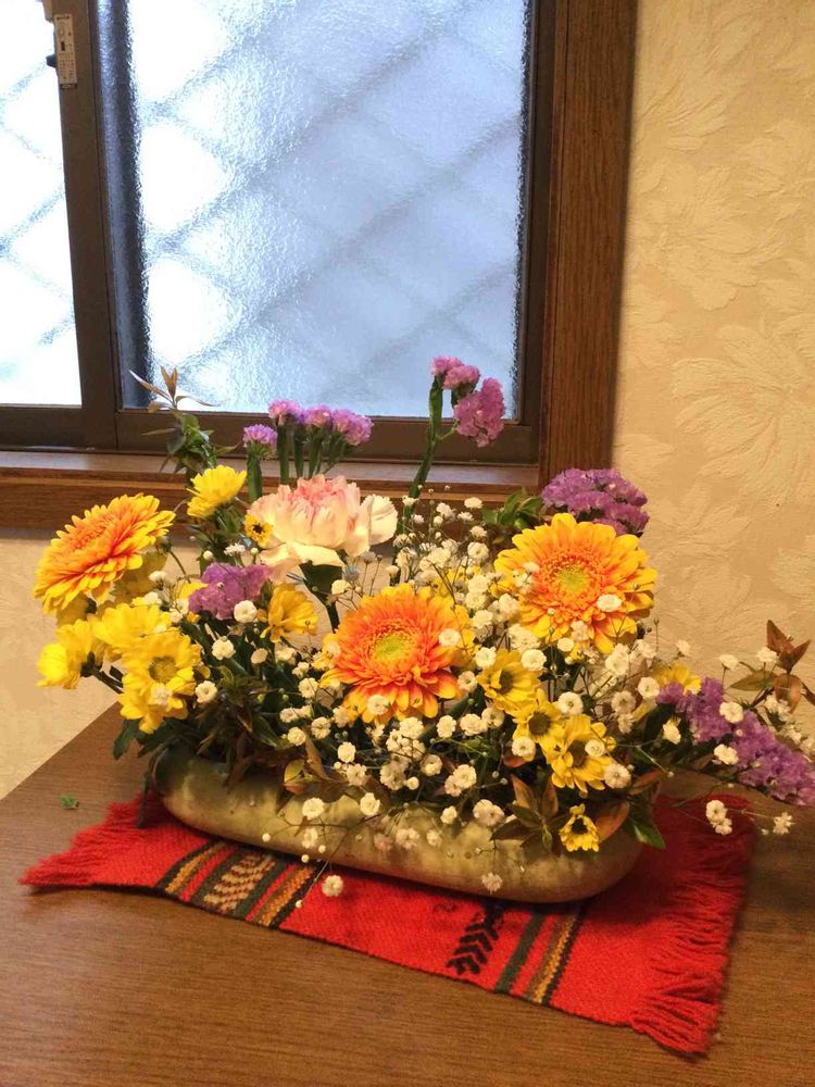 お花屋さんで選んだのがこんな色合いになってしまいました。