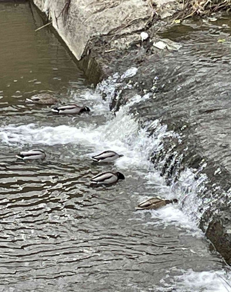川に顔を突っ込んでいます🦆🦆🦆🦆🦆