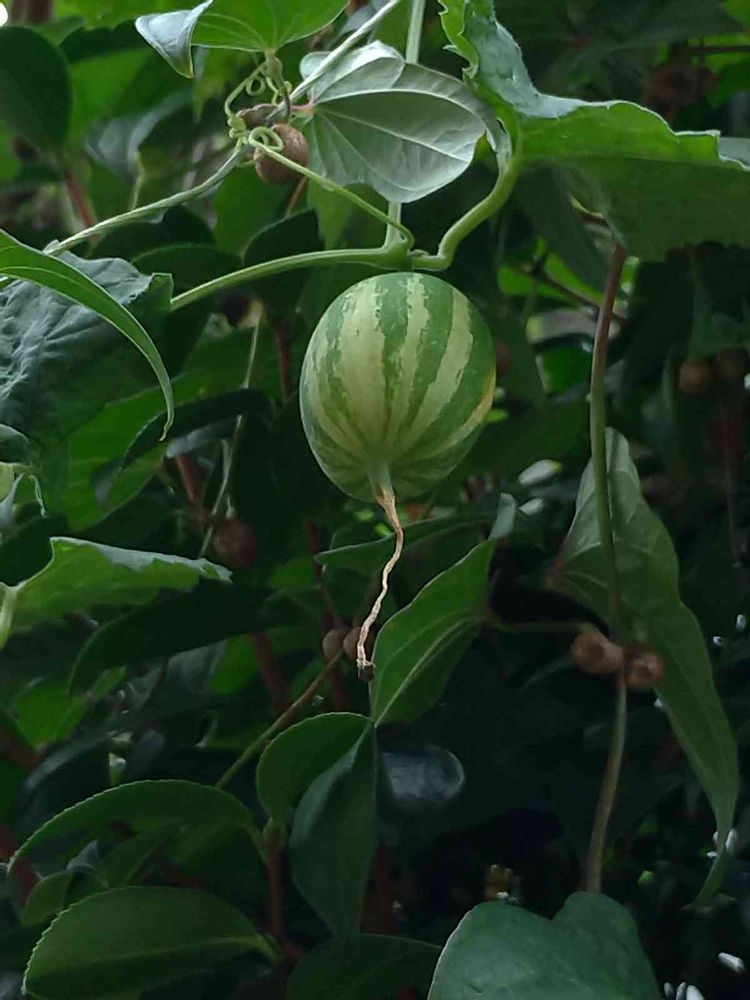 カラスウリは卵位だが小ちゃいのはスズメウリ!うずら卵位かな⁉️