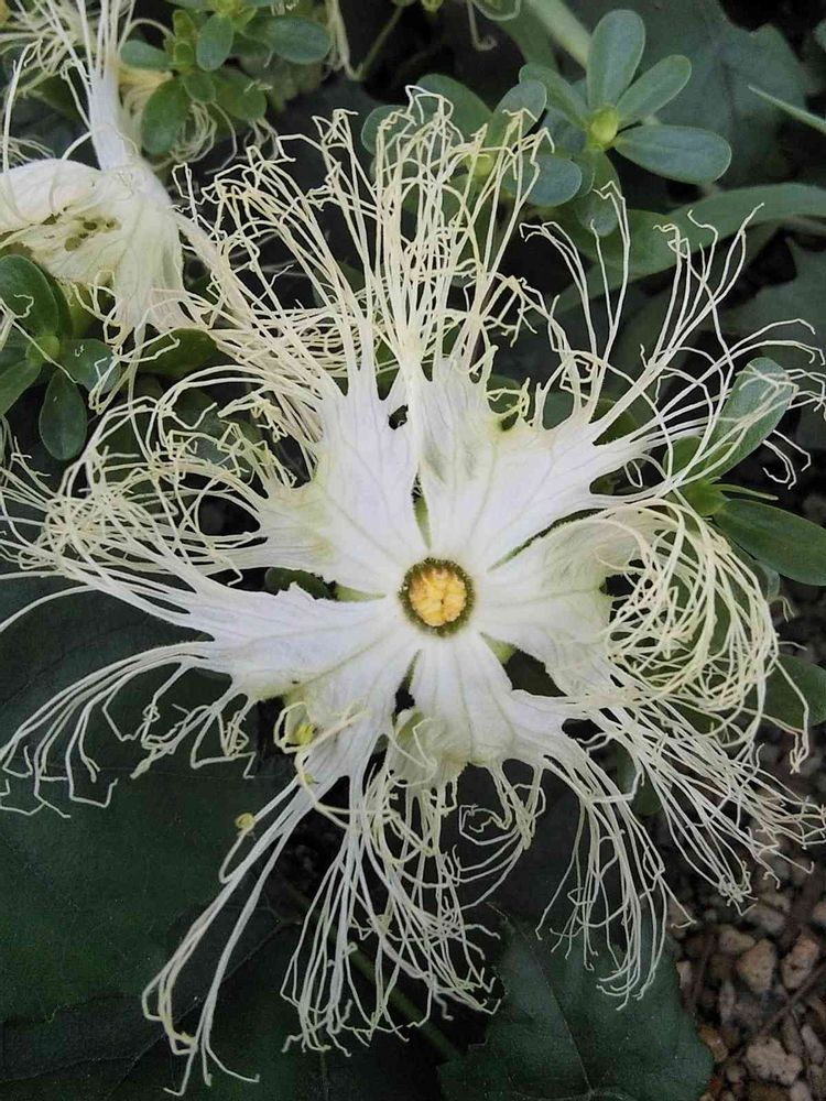 キカラスウリの手が伸びてるのは初めて見ました。くしゅくしゅになってるのは昼間見たことがあったのですが不思議な魅力のお花ですよね🤗💕見せて貰ってありがとうございます😊