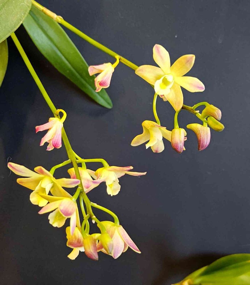 デンドロビウム アップルデイズ咲きました。去年より少し早いかな。外がピンクで内側が白いところが🍎っぽい。
