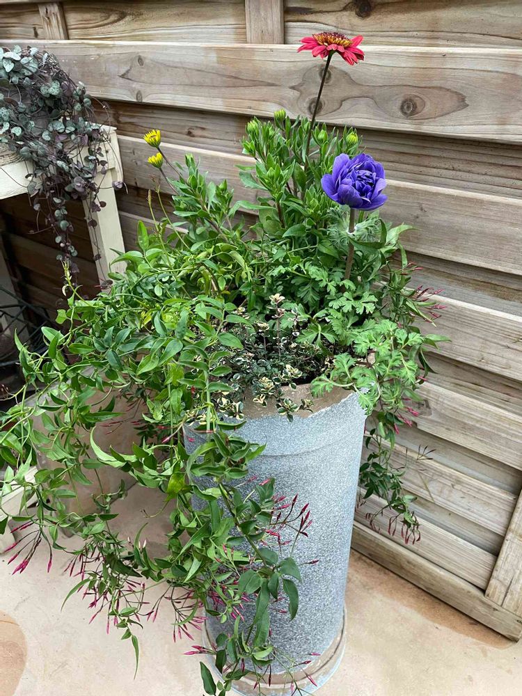 わぁー垂れ下がったジャスミンがとっても素敵な寄せ植えですね😃