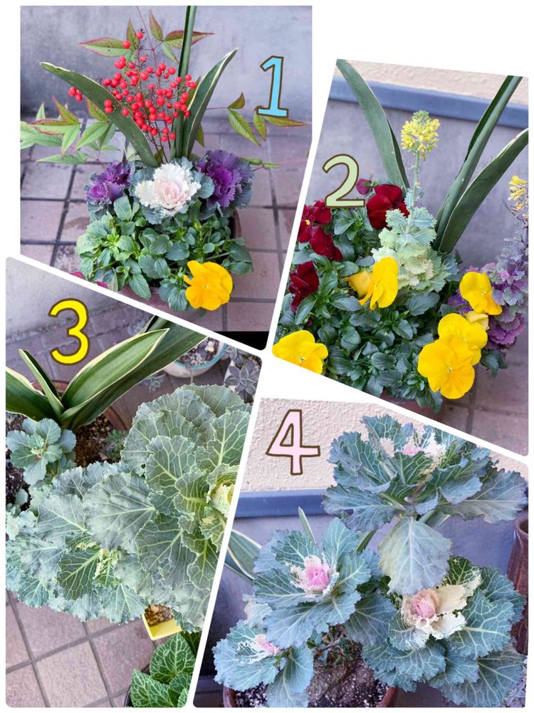 chiroさんの玄関,葉牡丹の寄せ植え,踊り葉牡丹かな?の投稿画像