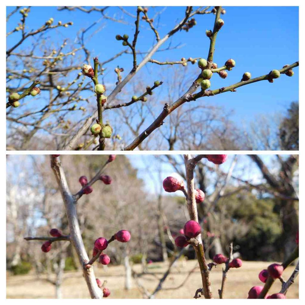 紅梅の蕾,白梅の蕾,公園の投稿画像