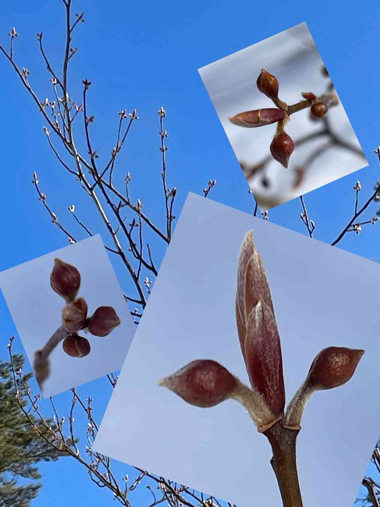 枝の先にあるのは葉芽 その下に丸い花芽がある