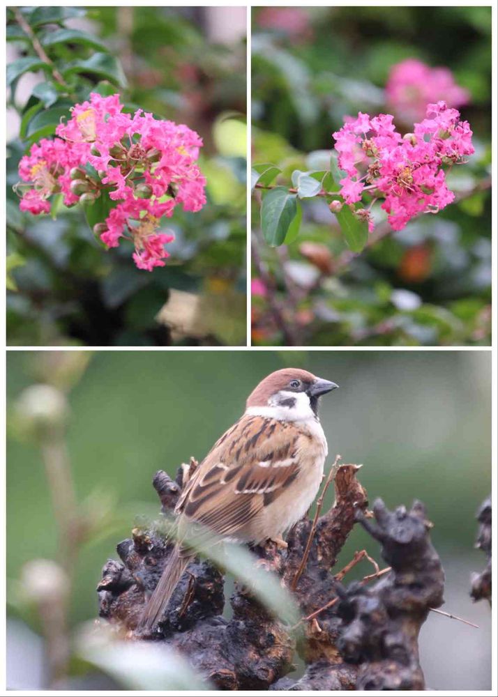 ピーモモさんの小さな庭,サルスベリ&雀,花のある暮らしの投稿画像
