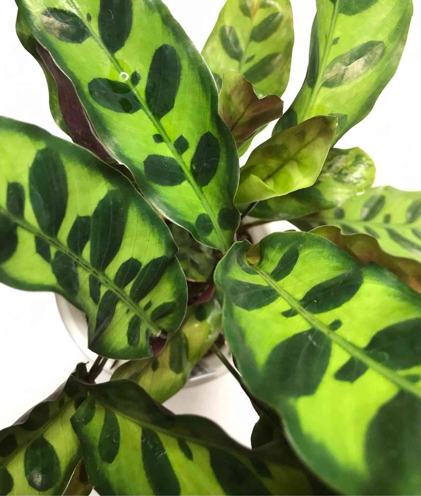 マコヤナに少し似た葉っぱの模様ですがこちらは細長い葉っぱをしているカラテア・ランキフォリアです🪴