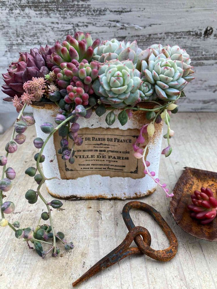 サビサビ素敵〜💗💗💗多肉さんと缶?リメ鉢?がとっても合っていていつも素敵〜💗💗💗
