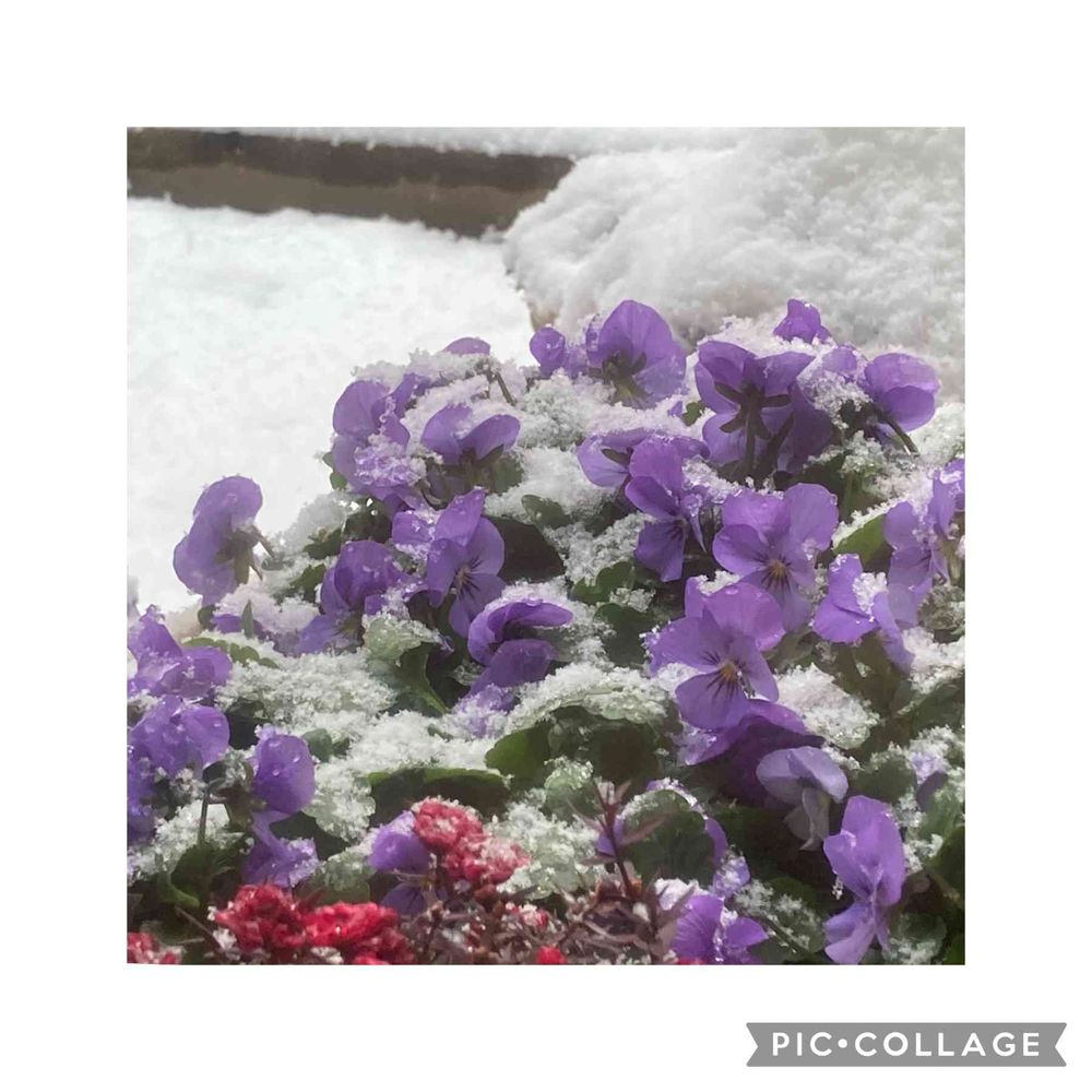 白い雪❄️とビオラ💜とても綺麗です😃💕💕
