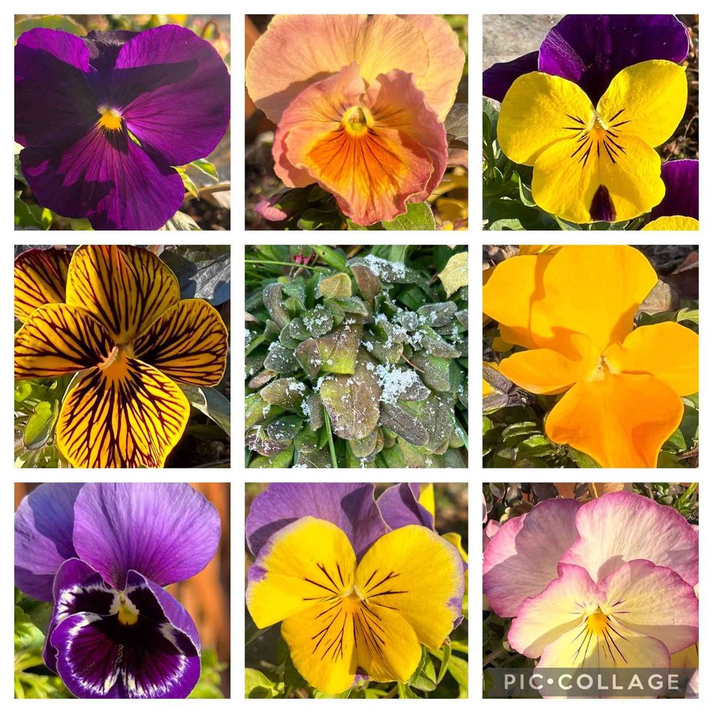 冷える朝でも、パンジーとビオラ達は元気に咲いています❁⃘*.゚
