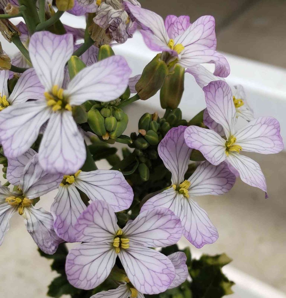 花弁の模様がパンジー、スミレみた〜い❣️ ネズミ大根🐀?聞いたことない…って思ったけど超辛なヤツ、おろし蕎麦に使う大根ですね? こんな綺麗な花が咲くなんて意外です😳 見せてくれてありがとうございます💕