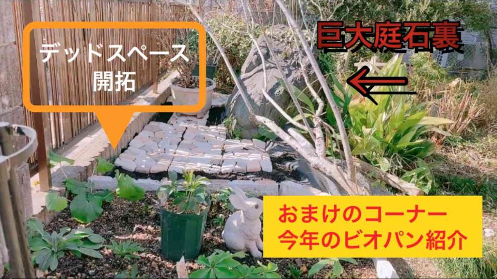 「和庭の巨大庭石裏デッドスペース開拓&今シーズンのビオパン紹介」です😊