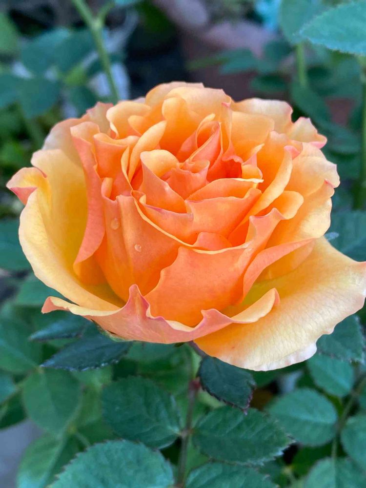 ☘️ばら[マンダリナコルダーナ]☘️.....今日は雪が散らついて尚更寒いなぁ💦🥶❄️🥶でも跳ね返すかのように温かみのある色合いで健気に咲いています🧡*🧡*🧡😍✨✨