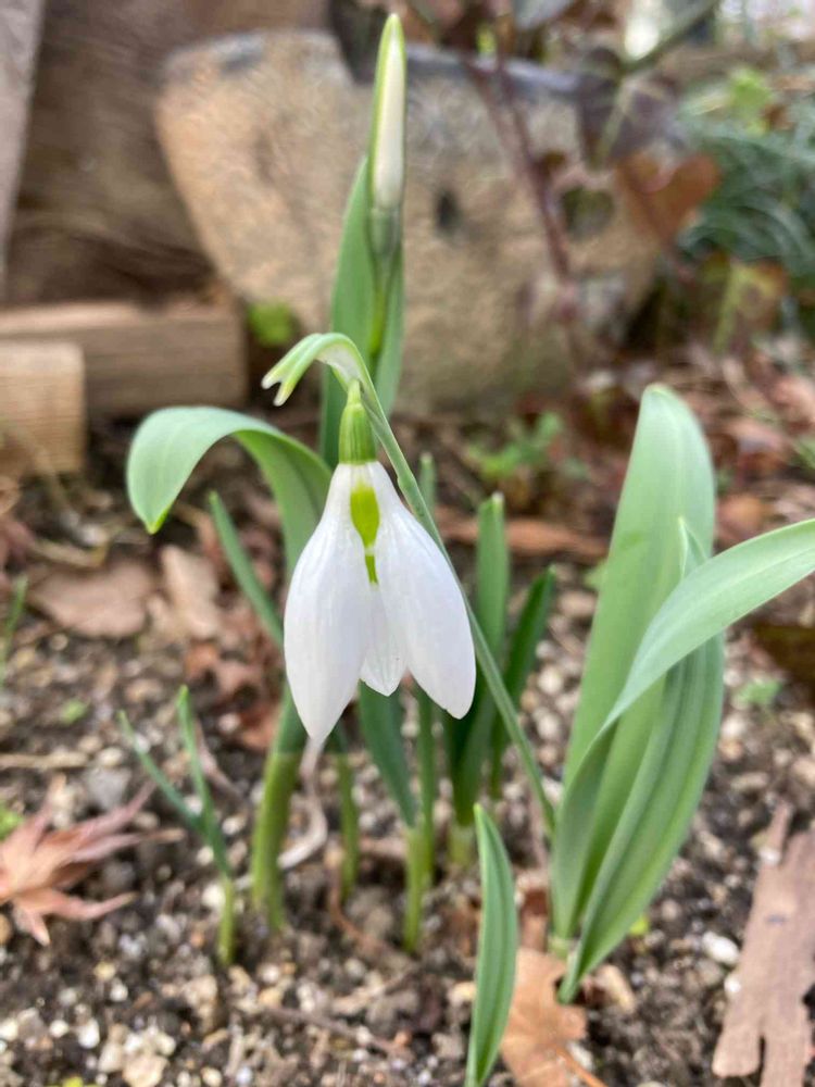 スノードロップ3年前に一つだけ球根植えたんだけど、あんまり増えないなぁ💦